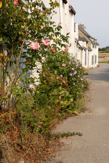 Je vous propose ici une mini-série photographique autour du thème des rues fleuries. On y découvre des roses trémières, des végétaux poussant naturellement au pied des murs, ainsi que des plantations entretenues par les habitants. Un regard sur la manière dont la nature transforme et adoucit l’espace urbain.